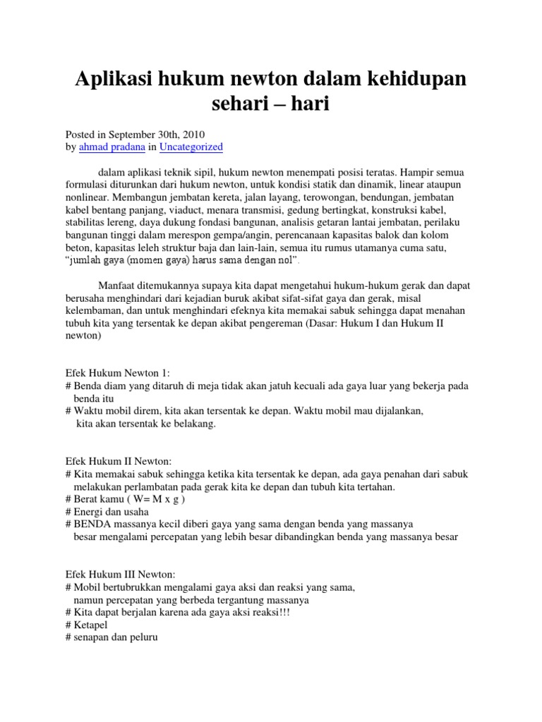 DOC) Aplikasi Hukum Newton dalam Kehidupan Sehari-hari | Tantya …