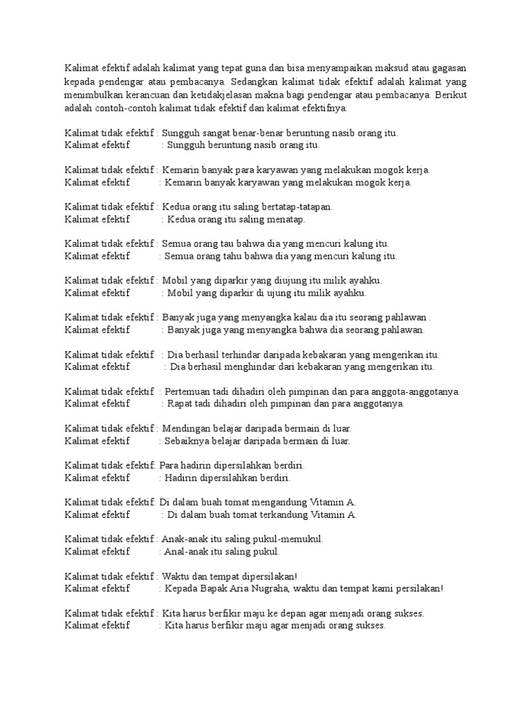 Contoh Kalimat Efektif Dan Kalimat Tidak Efektif
