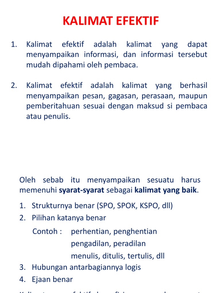Kalimat Efektif - Pengertian, Ciri, Syarat Dan Contohnya