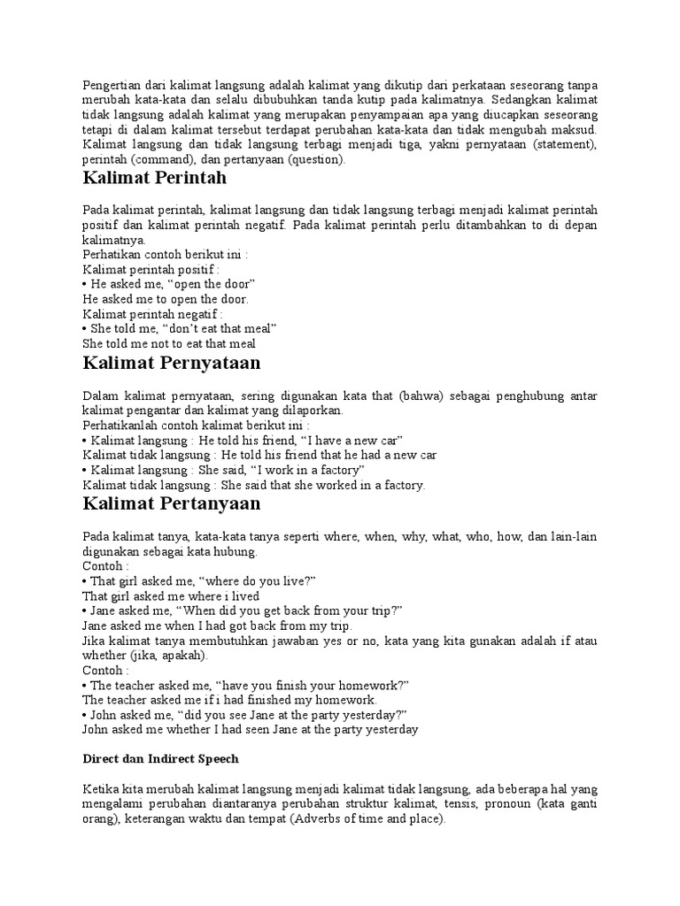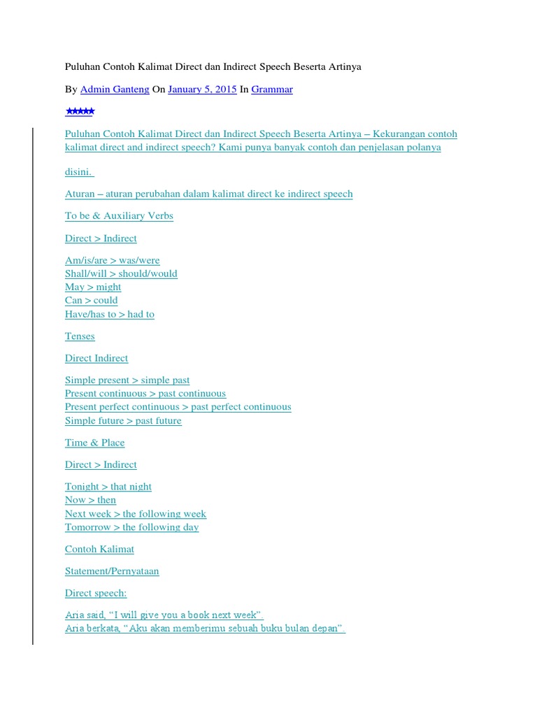 Puluhan Contoh Kalimat Direct Dan Indirect Speech Beserta Artinya …