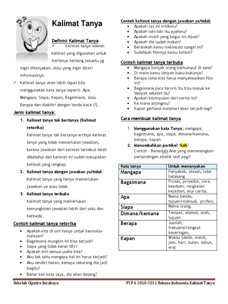 Contoh Kalimat Tanya Untuk Anak Sd – Bah