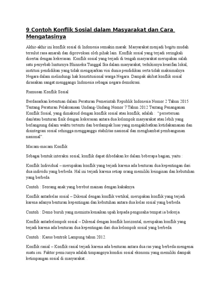 Contoh Konflik Sosial Dalam Masyarakat Dan Penyelesaiannya …