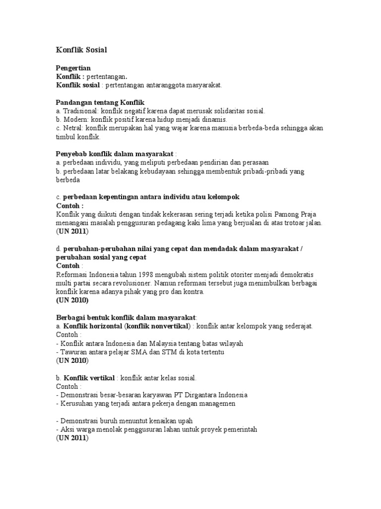Soal Sosiologi : Konflik Sosial dalam Masyarakat - Muttaqin id