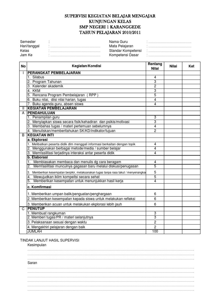 DOC) Laporan Supervisi (Contoh).doc | Sumarso M.Pd. - Academia.edu