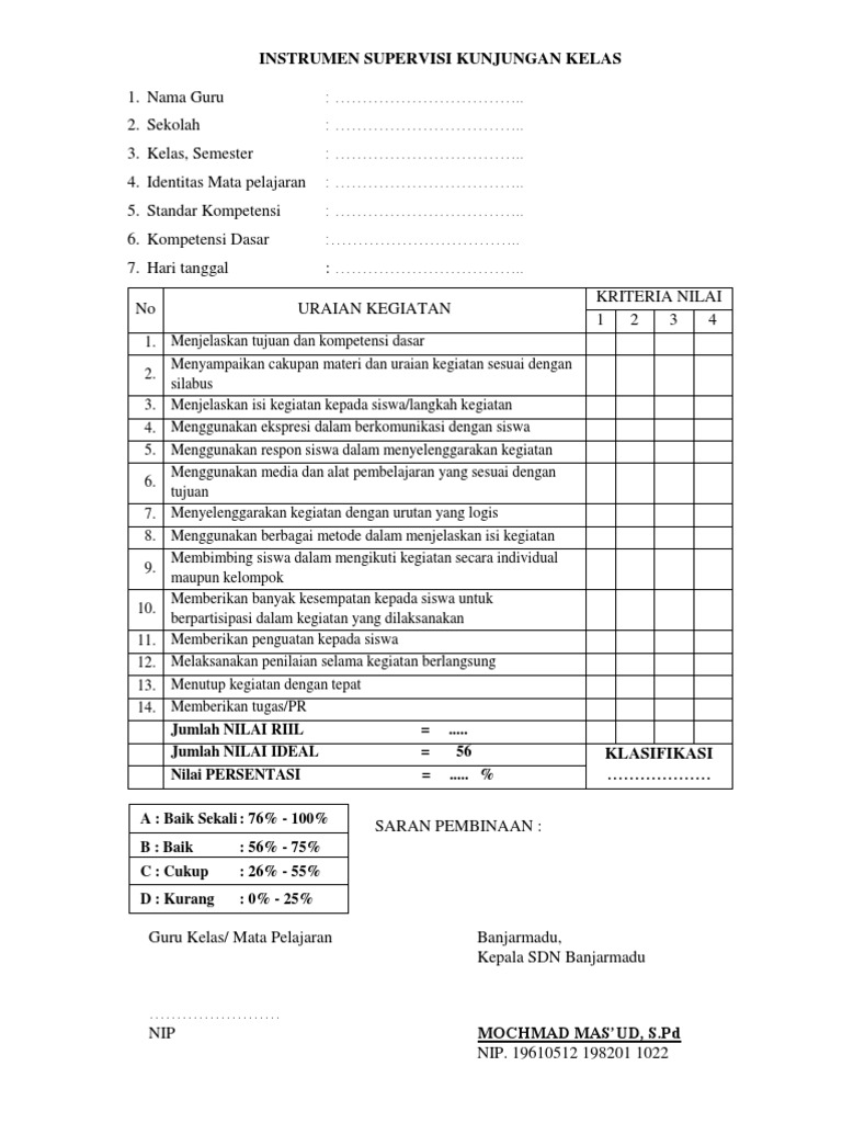 Format Contoh Hasil Supervisi Kepala Sekolah Terhadap Guru - Bagikan Contoh