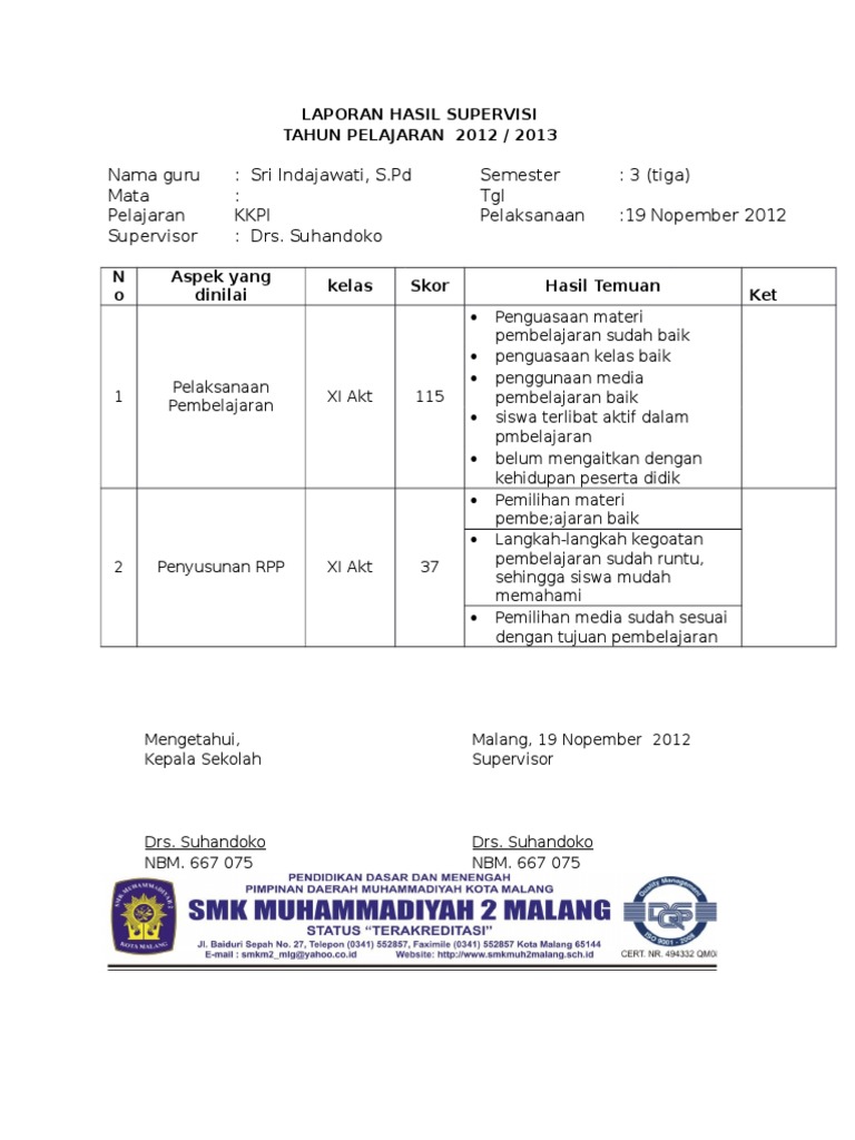 contoh laporan supervisi oleh kepala sekolah | Krisnanda Parsa - Academia.edu