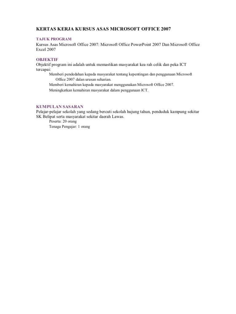 Kertas Kerja Kursus Asas Microsoft Office 2007