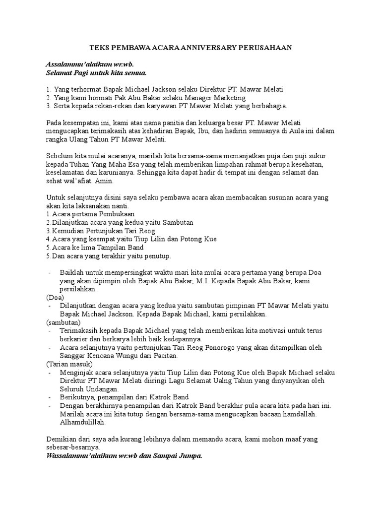 Teks Mc Acara Ulang Tahun Perusahaan - Berbagai Teks Penting