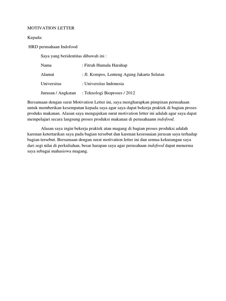 Contoh Motivation Letter Untuk Melamar Pekerjaan Bahasa Indonesia - Bagikan Contoh