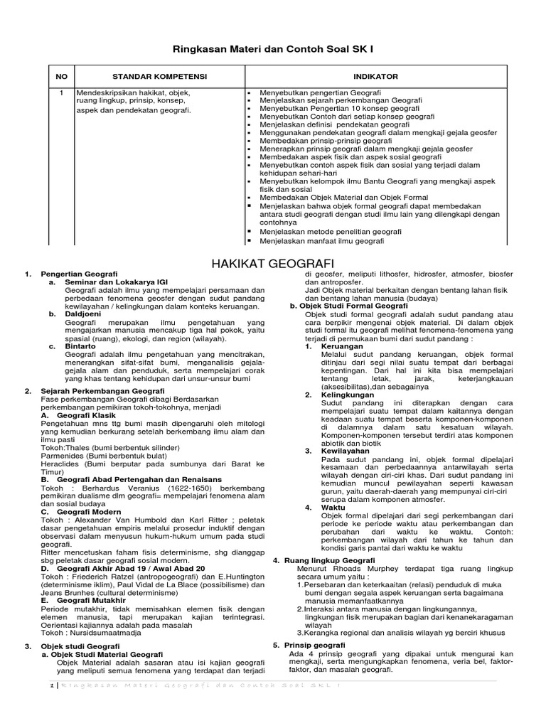 Ringkasan Materi Geografi Dan Contoh Soal SKL I