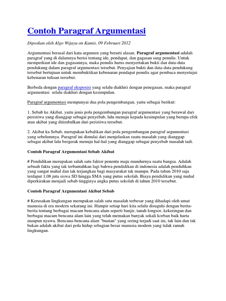 Pegertian dan Contoh Paragraf Argumentasi (Argumentatif) Lengkap …