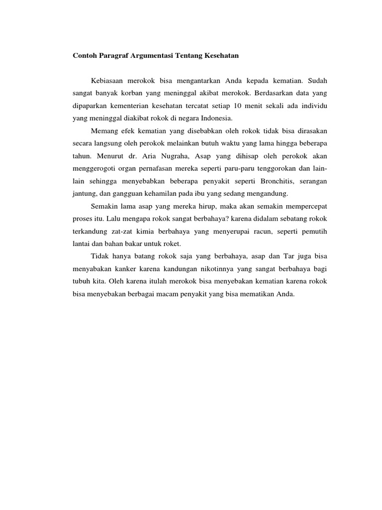contoh paragraf Argumentasi tentang kesehatan