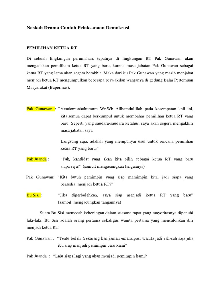 Naskah Drama Contoh Pelaksanaan Demokrasi