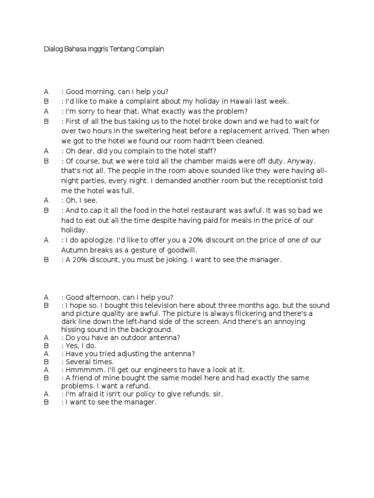 Contoh Dialog Dan Cara Menyampaikan Keluhan atau Complain Dalam …
