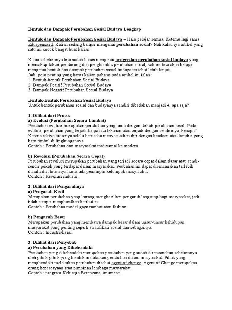 Bentuk Dan Dampak Perubahan Sosial Budaya Lengkap