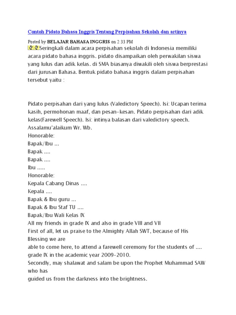 Contoh Pidato Bahasa Inggris Tentang Perpisahan Sekolah Dan Artinya | Religion And Belief
