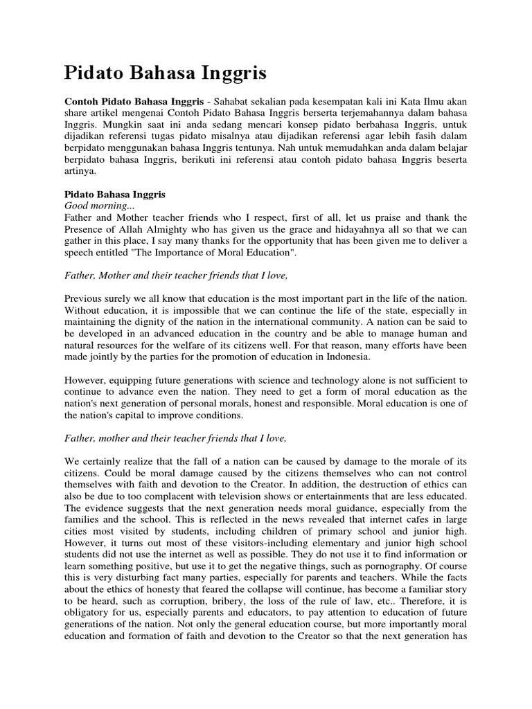 Pidato Bahasa Inggris: Contoh Pidato Bahasa Inggris - Sahabat sekalian pada kesempatan kali ini Kata Ilmu akan | Indonesian Language | Internet