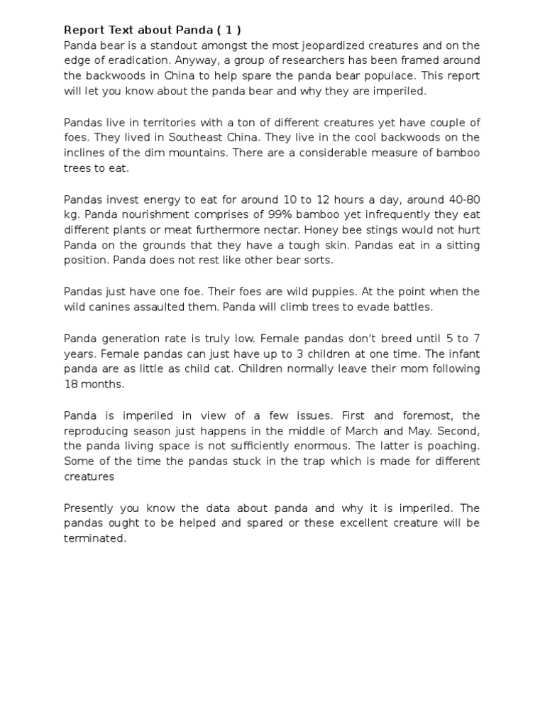 Contoh Report Text Singkat Tentang “ Panda “ Lengkap Dengan …
