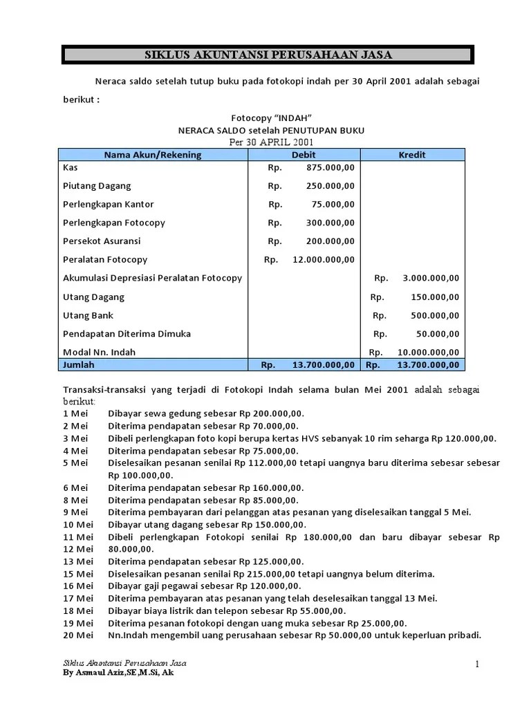 CONTOH SOAL KASUS IMPLEMENTASI SIKLUS AKUNTANSI PERUSAHAAN JASA - [PPTX Powerpoint]