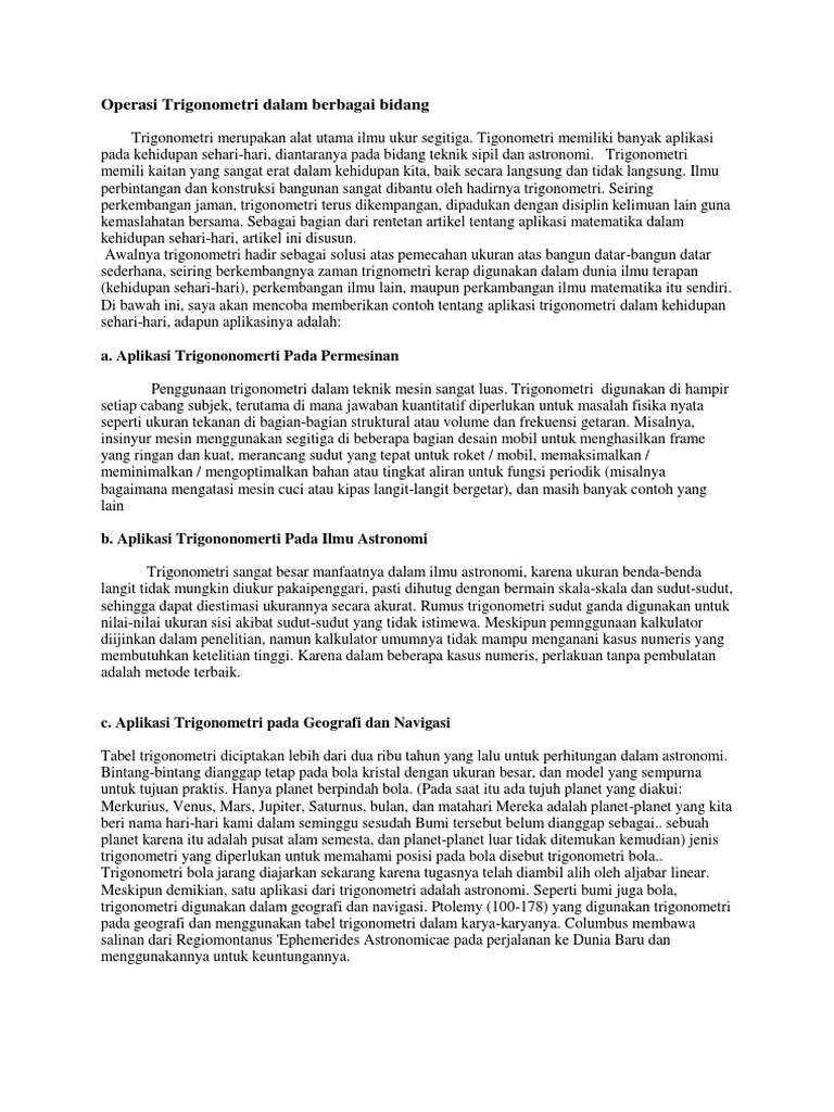 Operasi Trigonometri Dalam Berbagai Bidang