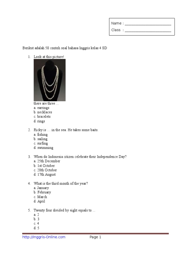 Soal Bahasa Inggris Kelas 4 Sd | Indonesia