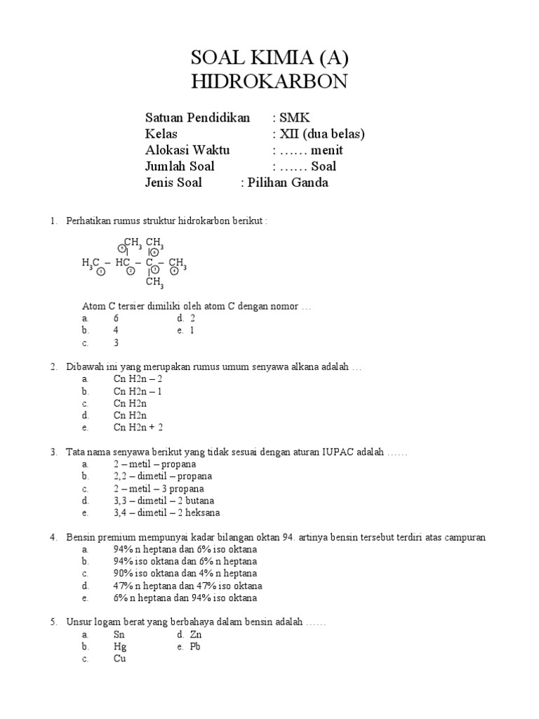 Contoh Soal Kimia Tentang Hidrokarbon - Guru Paud