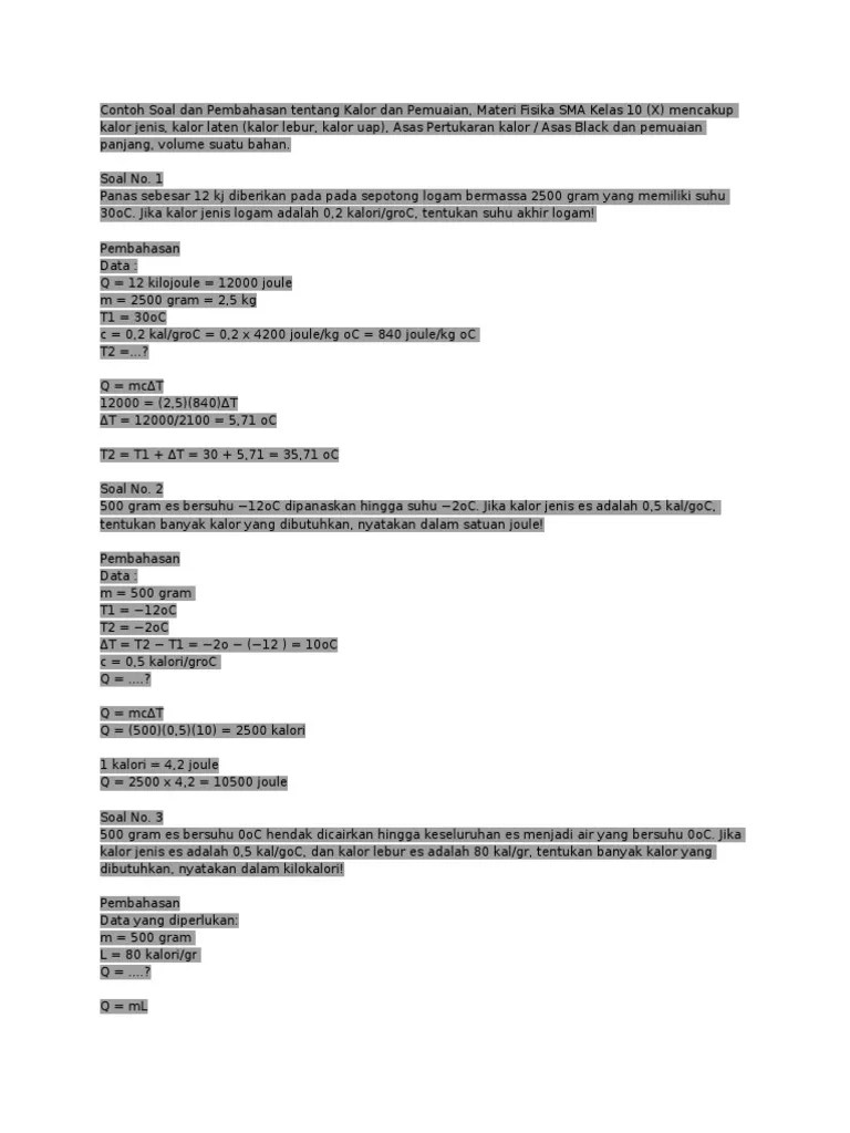 Contoh Soal Dan Pembahasan Tentang Kalor Dan Pemuaian - [DOCX …