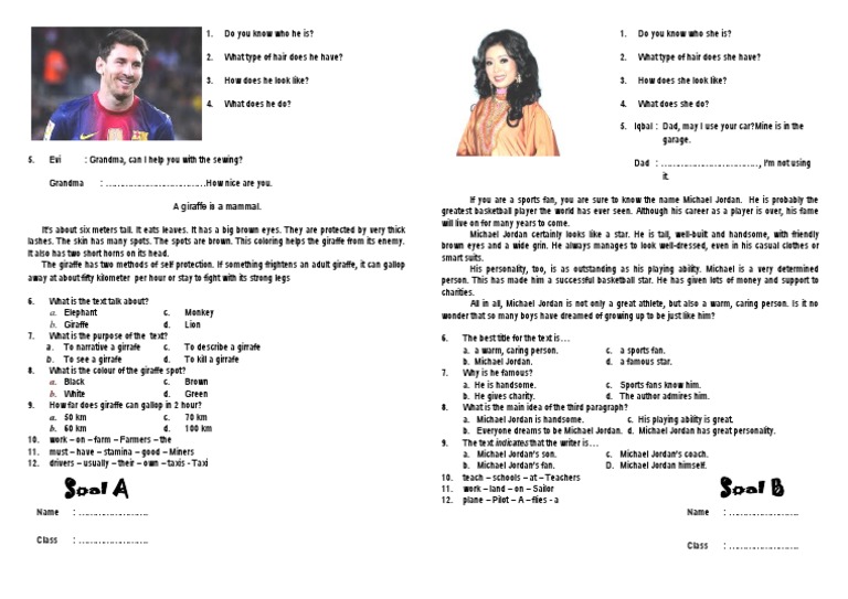 Soal Descriptive Text Describing Someone - Dimensi Bahasa Inggris
