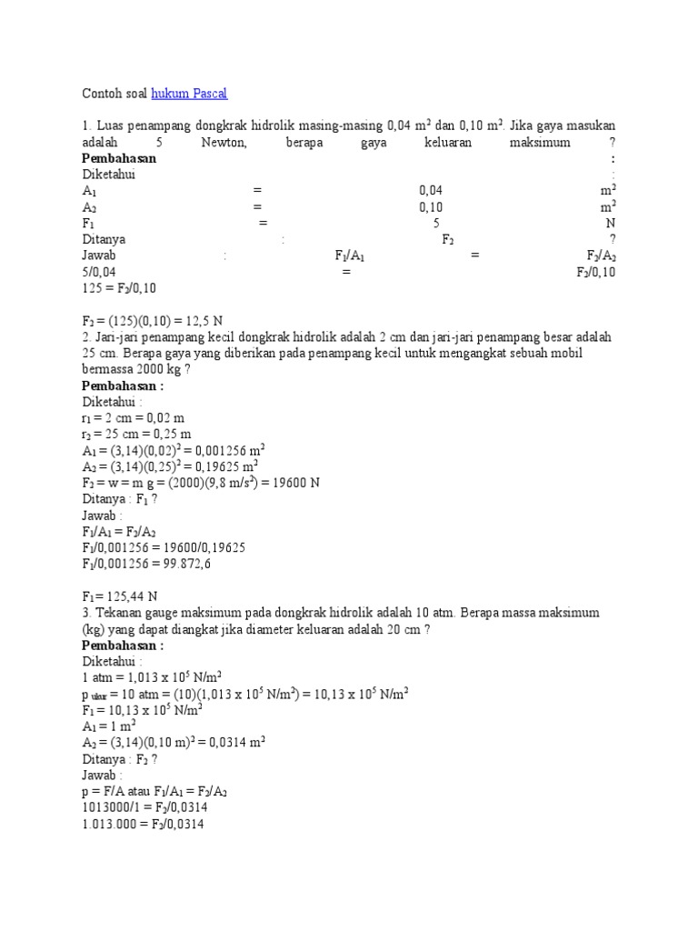 Contoh Soal Dongkrak Hidrolik Dan Penyelesaiannya - Contoh Soal …