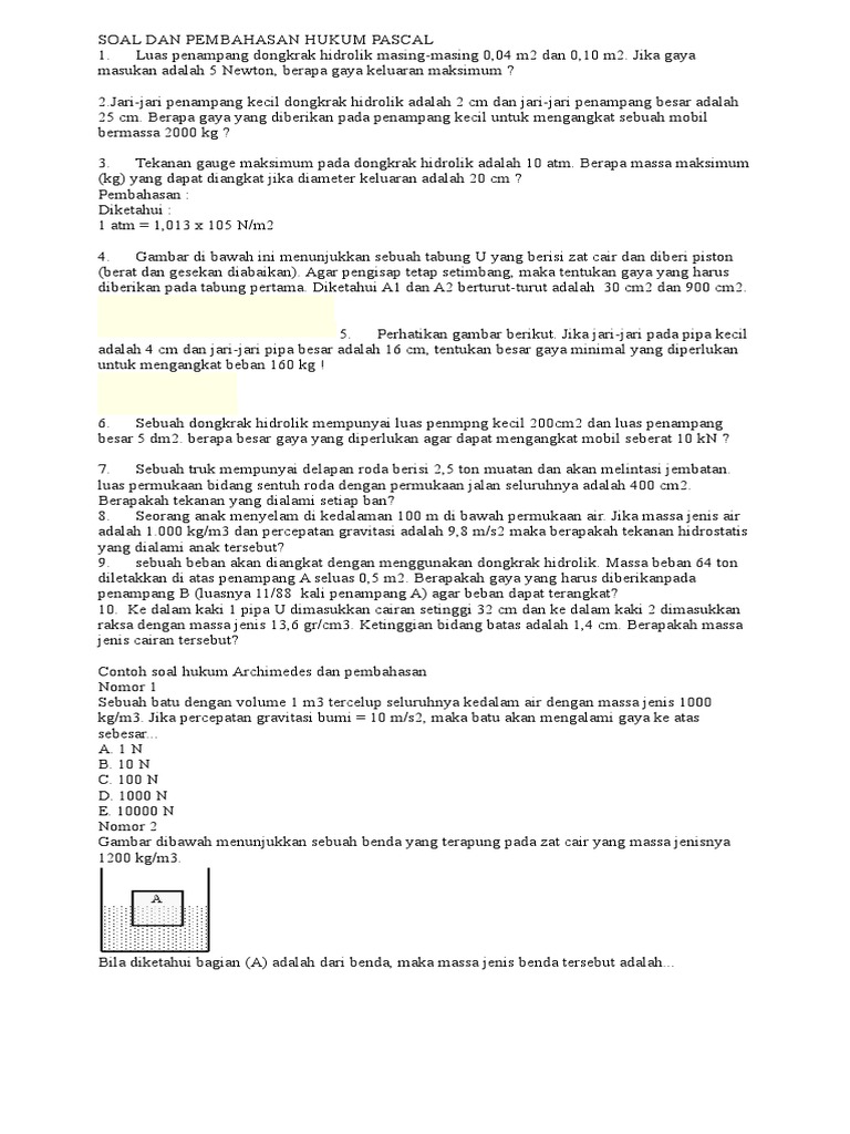 PDF) Contoh soal hukum pascal dan hukum archimedes docx | Nur …