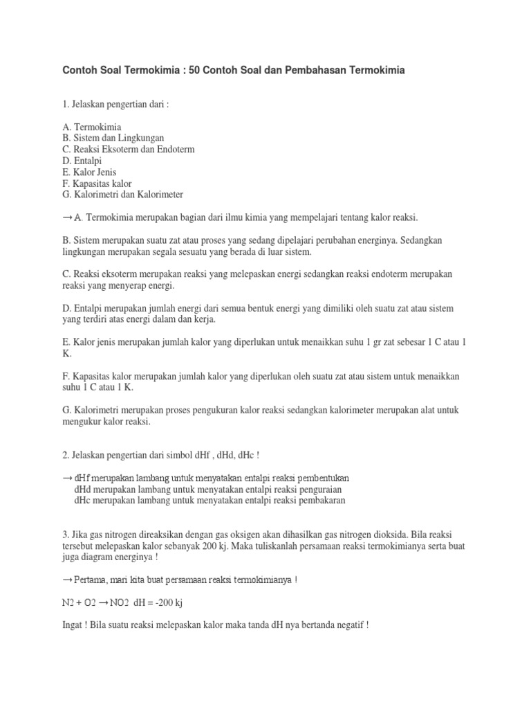 PDF) Contoh Soal termokimia | kota jakarta - Academia.edu