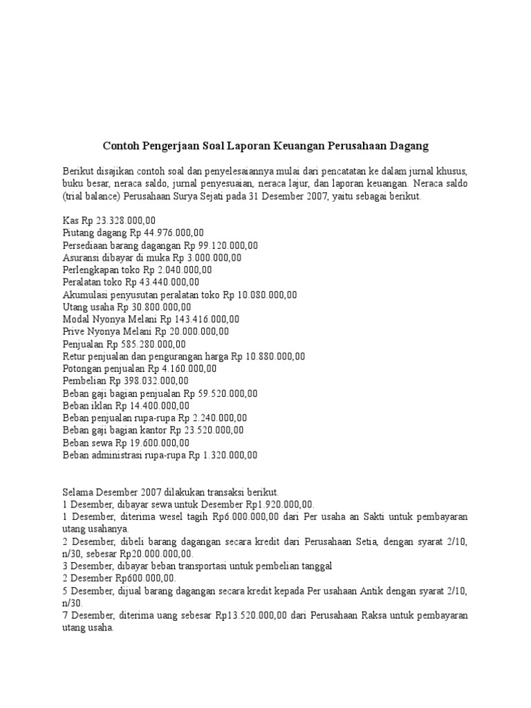 Contoh Soal Dan Jawaban Laporan Keuangan Perusahaan Dagang Pdf …
