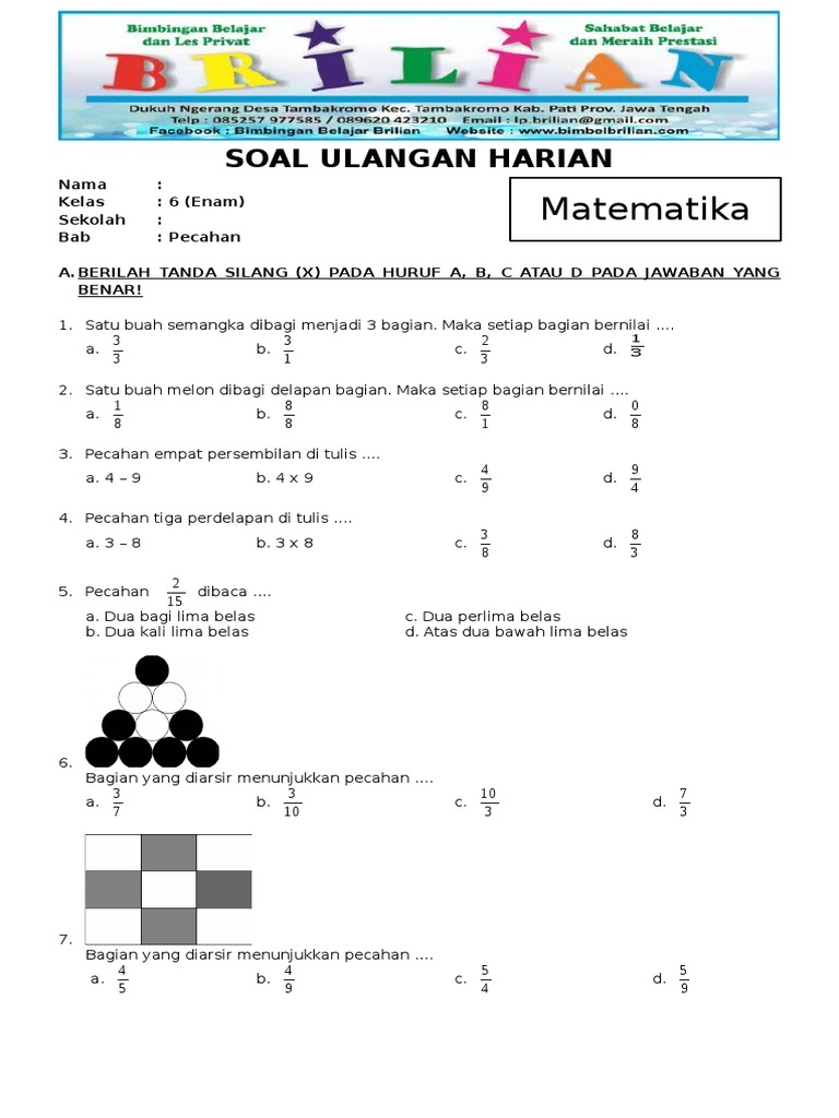 Latihan Soal Mengenal Pecahan Dengan Gambar - Bimbel Brilian