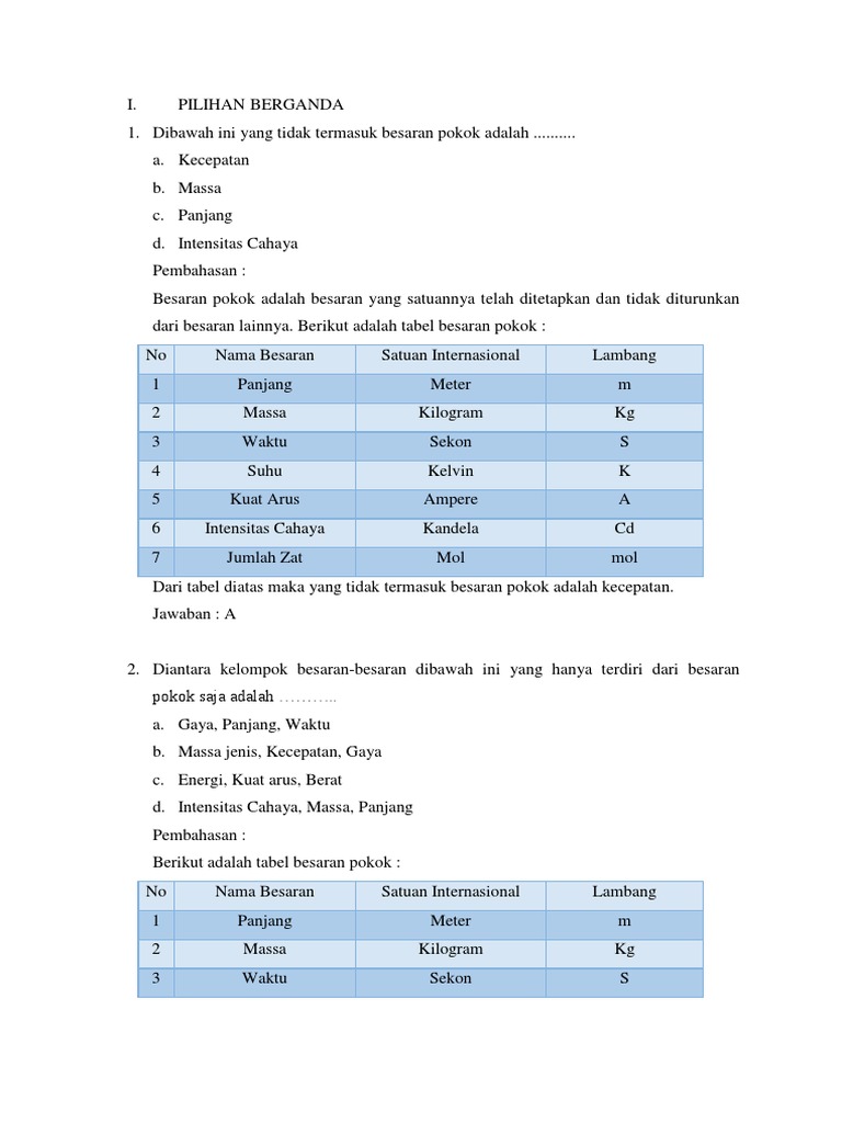 Latihan soal dan pembahasan besaran dan satuan