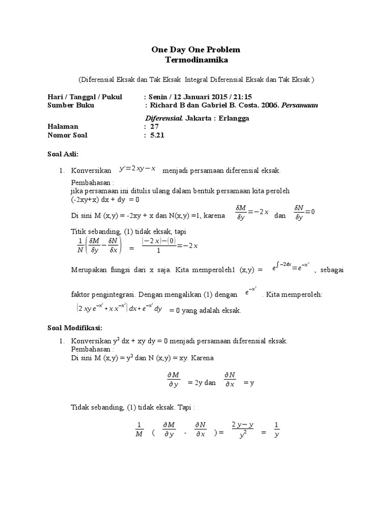 Contoh Soal Diferensial Eksak Dan Tak Eksak