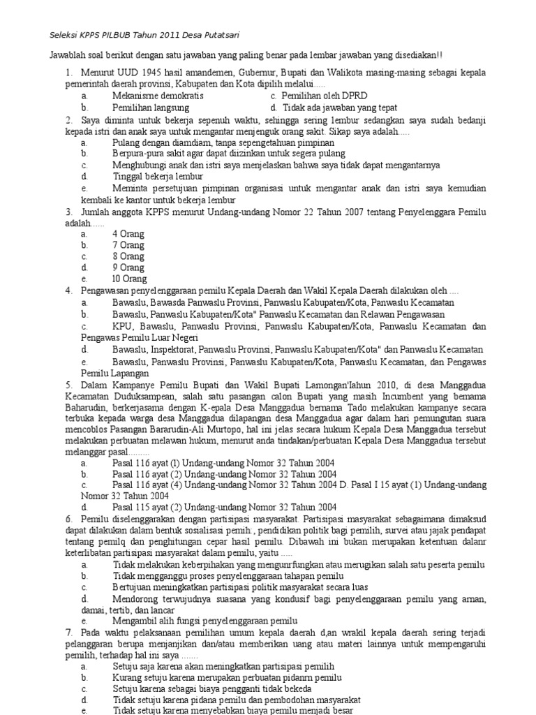 Contoh Soal Tes Tulis Kpps 2018 - Contoh Soal Terbaru