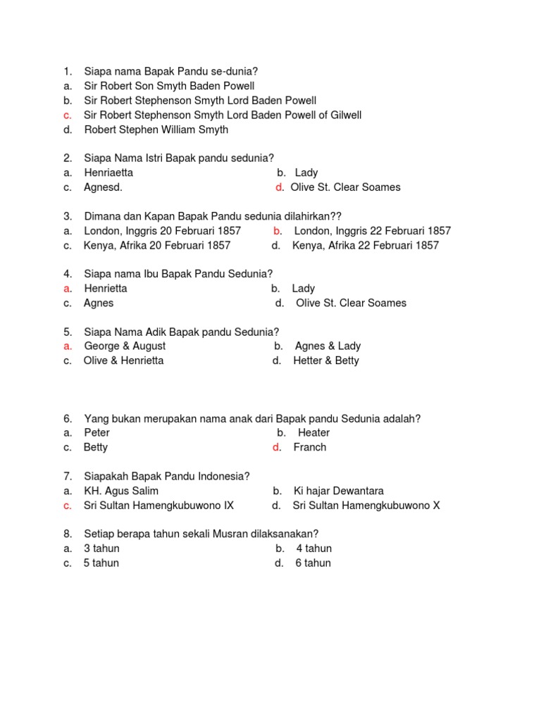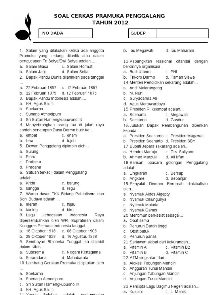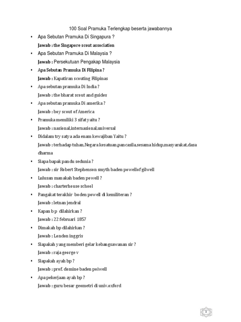 DOC) Kumpulan Soal Pengetahuan Umum Kepramukaan Lengkap Jawaban | Farhan Hidayat - Academia.edu