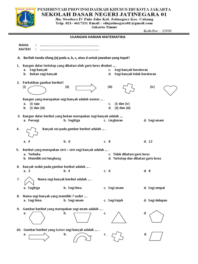 Soal Segi Banyak Beraturan Dan Tidak Beraturan Kelas 4 Sd - Dapatkan Data