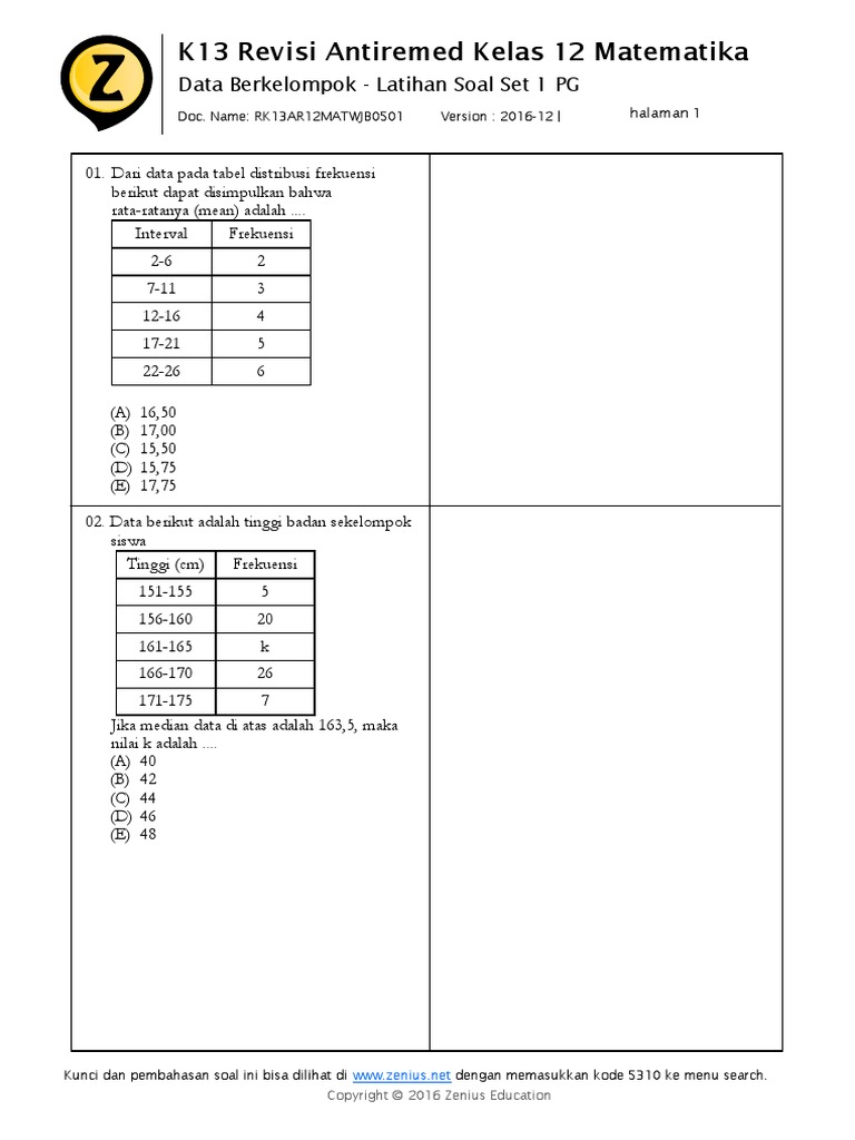 Contoh Soal Distribusi Frekuensi Dan Jawabannya Pdf Terbaru 2019