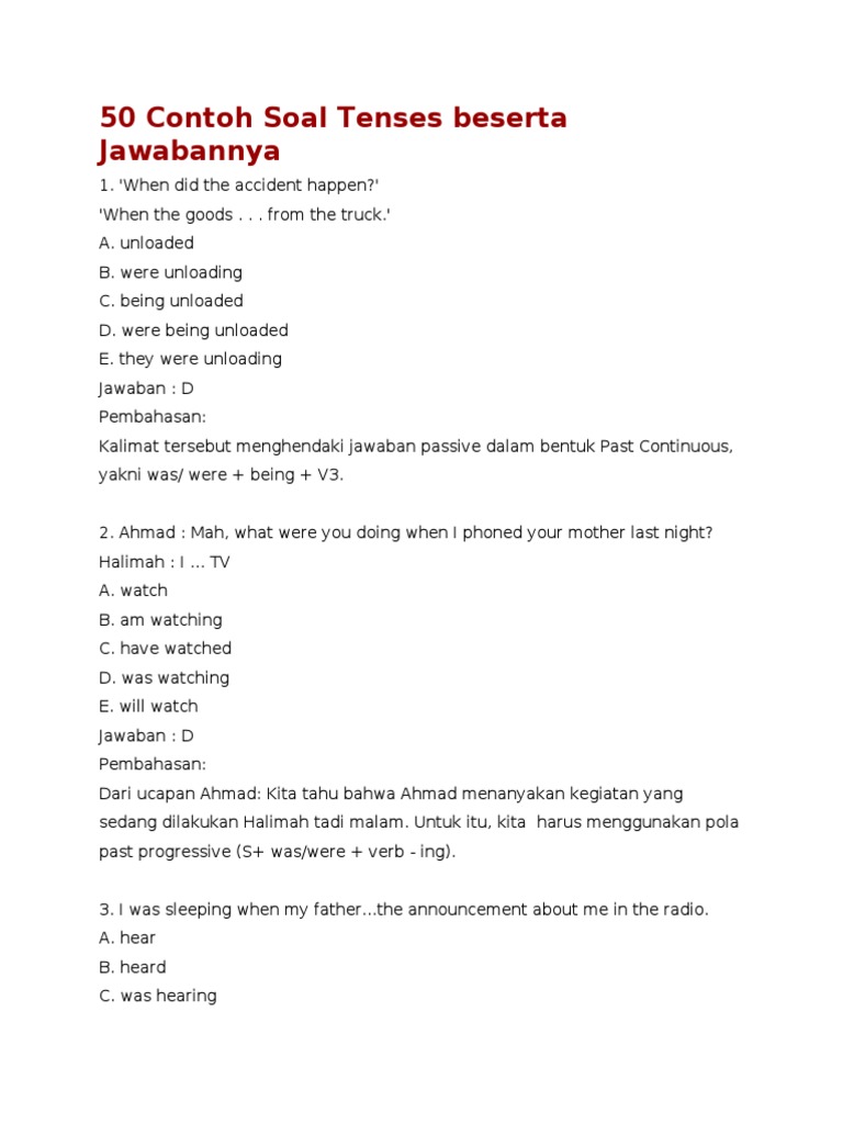 Contoh Soal Tenses Pilihan Ganda Dan Pembahasannya - Dapatkan Contoh