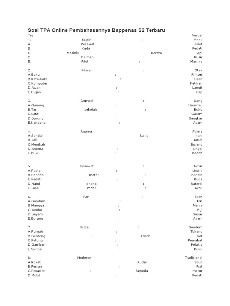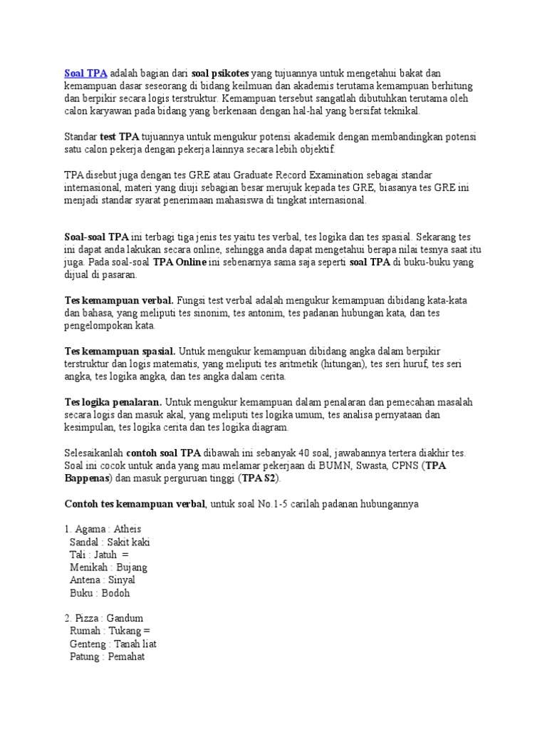 Soal Tpa S2 Pdf | Peatix