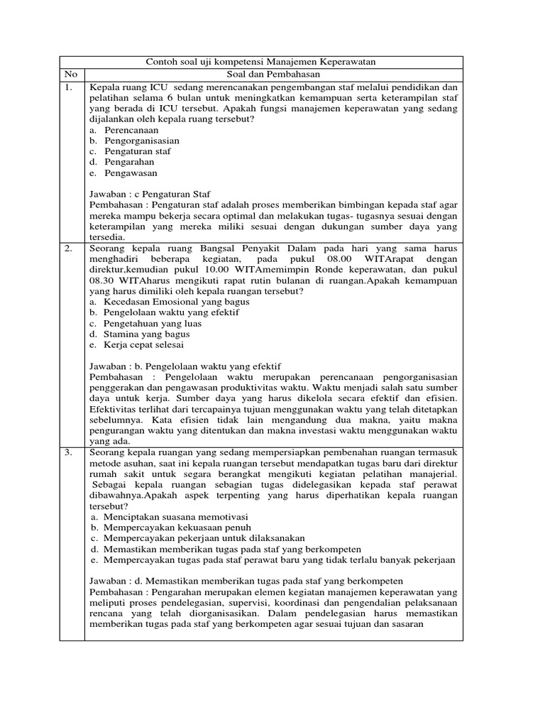 Contoh Soal Uji Kompetensi Manajemen Keperawatan - Contoh Soal Terbaru