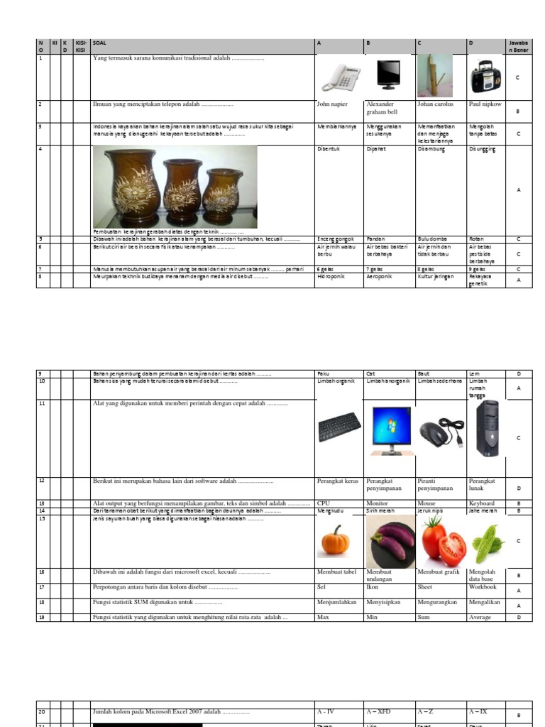 contoh Soal Prakarya MTs ujian Berbasis komputer