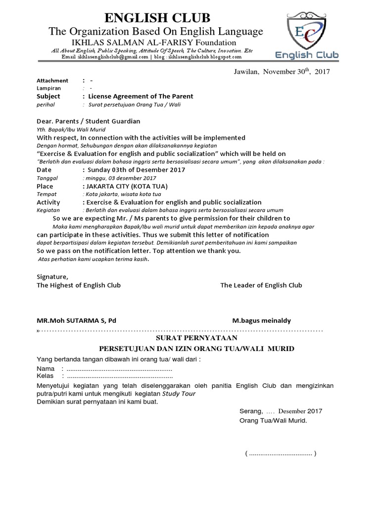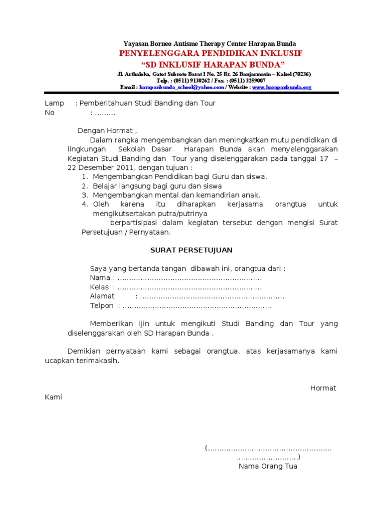Contoh Surat Persetujuan Orang Tua Untuk Study Tour - Bagi Contoh …