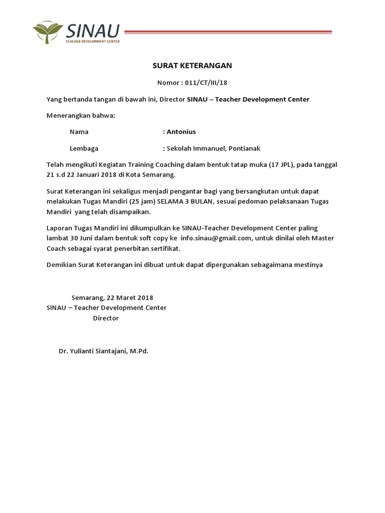 Contoh Surat Keterangan Lulus Mi Ddi Ujuna Palu