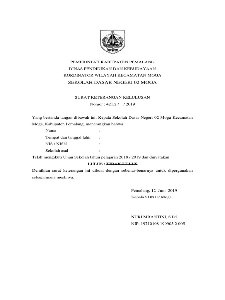 Download Format Surat Keterangan Lulus (SKL) 2020 - Komunitas SMK Kabupaten Grobogan
