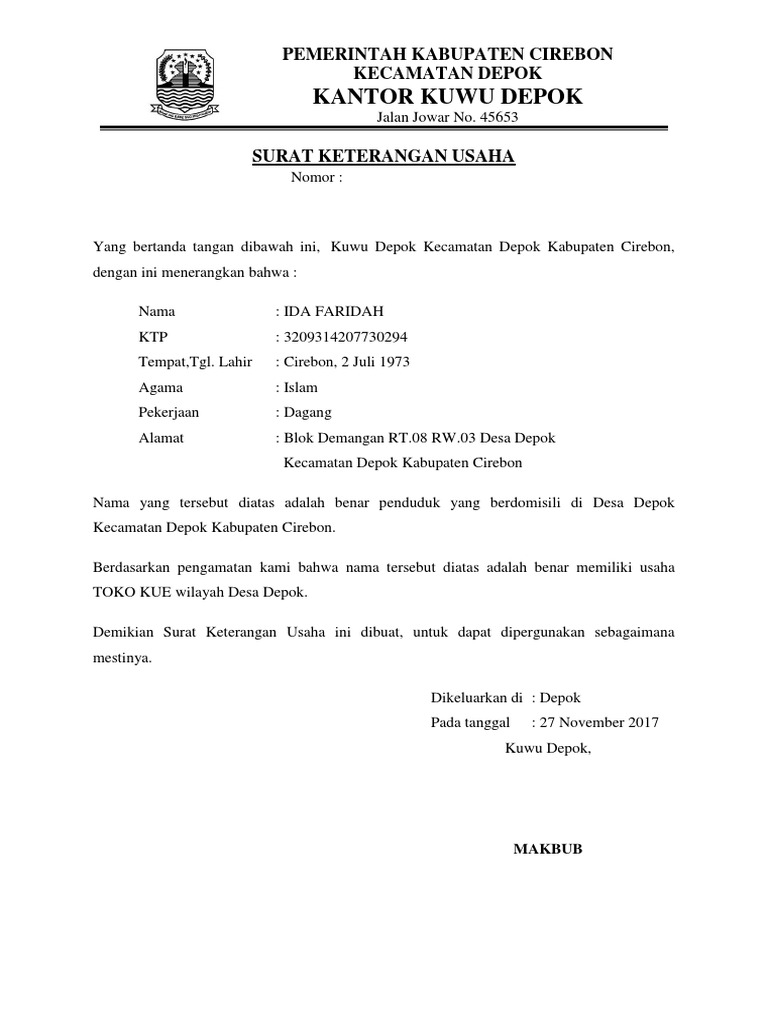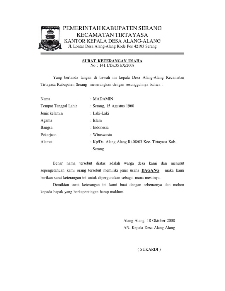 Contoh Surat Keterangan Usaha Dagang - Download Kumpulan Gambar