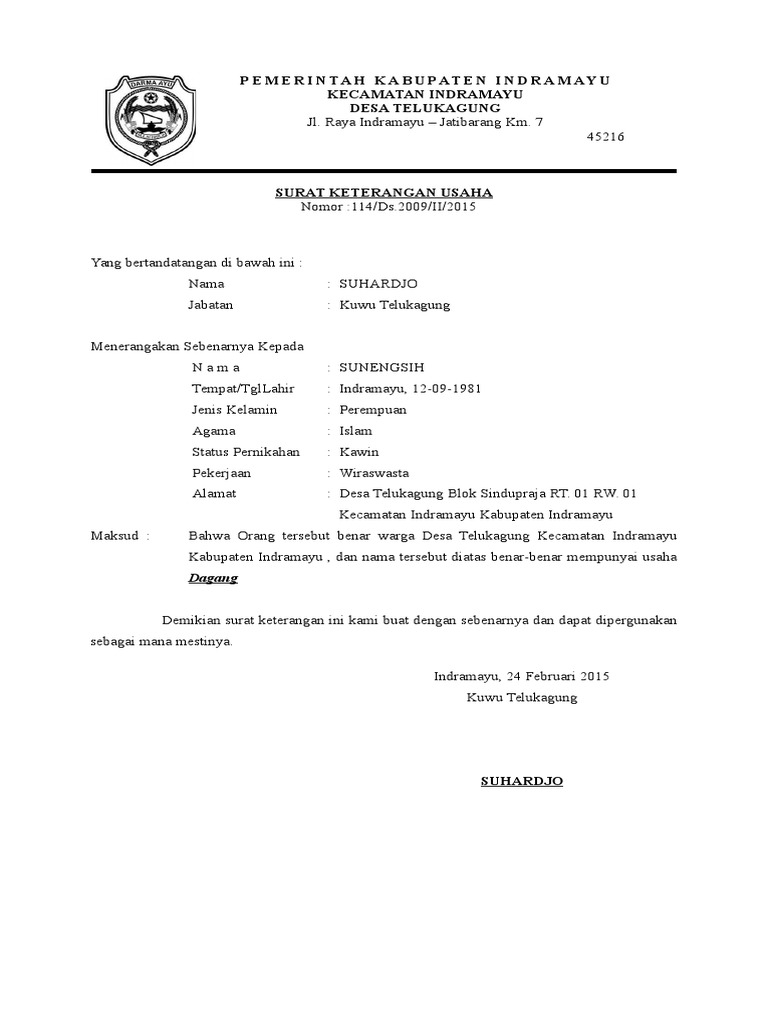 Contoh Surat Izin Usaha Dari Desa - Berbagi Contoh Surat