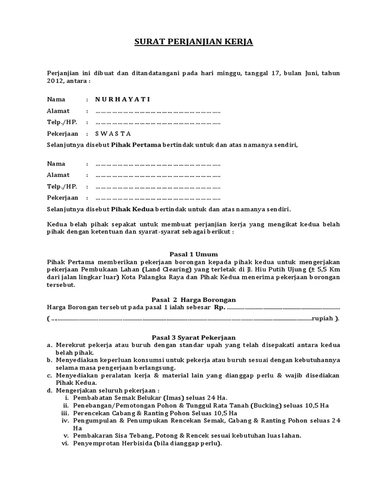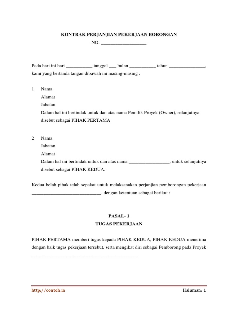 DOC) SURAT KONTRAK PERJANJIAN PEKERJAAN BORONGAN 1 | suryanto trihartono - Academia.edu