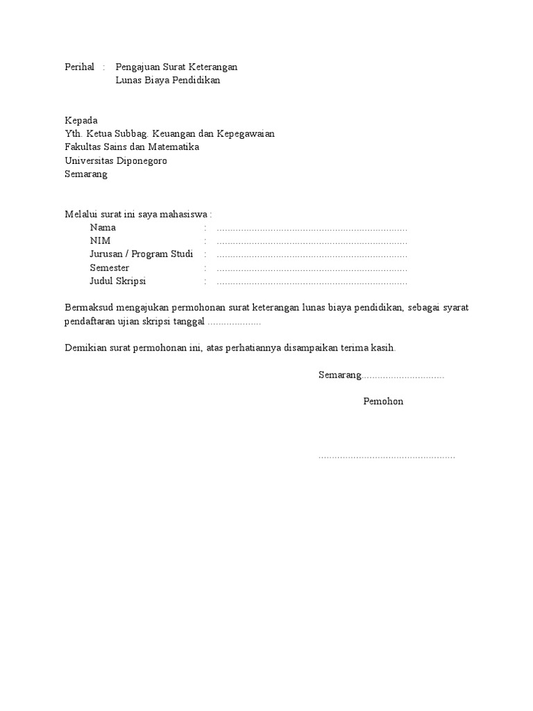 Contoh Surat Permohonan Lunas by Pendidikan